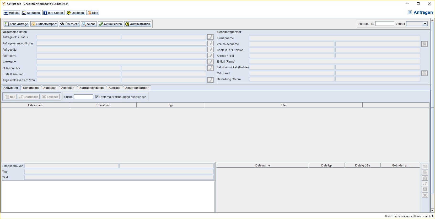Lassen Sie sich von der Kontakaufnahme, über die Angebotserstellung bis hin zum Auftragseingang unterstützen und dokumentieren Sie den gesamten Vorgang in standardisierter und dadruch zeit- und inhaltseffektiver Form
